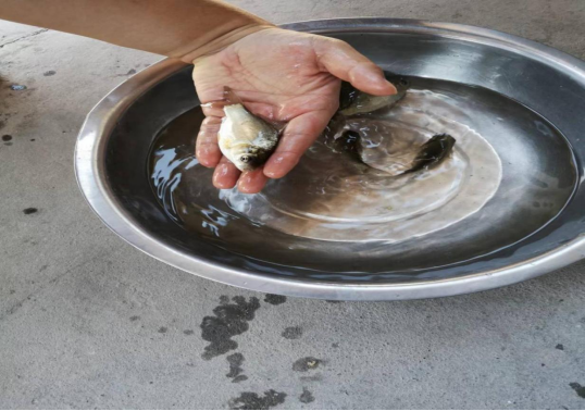 調研組一行主要走訪了沅江市鯽魚主養區黃茅洲鎮,在衛星湖漁場和三聯湖漁場,調研組深入合方鯽養殖塘邊,跟養殖戶進行了細致深入的交流,詢問養殖面積、養殖數量、生長速度、抗病情況和養殖戶對合方鯽2號這個品種的看法。這兩個漁場都是今年5月份才開始從事合方鯽2號養殖,走訪的養殖戶一致表示,合方鯽2號是一個非常優秀的養殖品種,成活率高,生長速度快,抗病性強,體型體色非常好看,從水花下塘到現在三個月時間,個體已經達到了去年別的鯽魚苗種一年生長的大小,套養到精養塘的合方鯽2號鯽苗種已經有一兩多了,估計年底能夠達到6-8兩,可以上市。調研組一行現場從苗種塘和套養塘隨機起捕了少量合方鯽2號查看,合方鯽2號長勢均勻,游動活潑有力,體色均勻亮麗,苗種塘規格35-40g,套養塘規格65-70g。