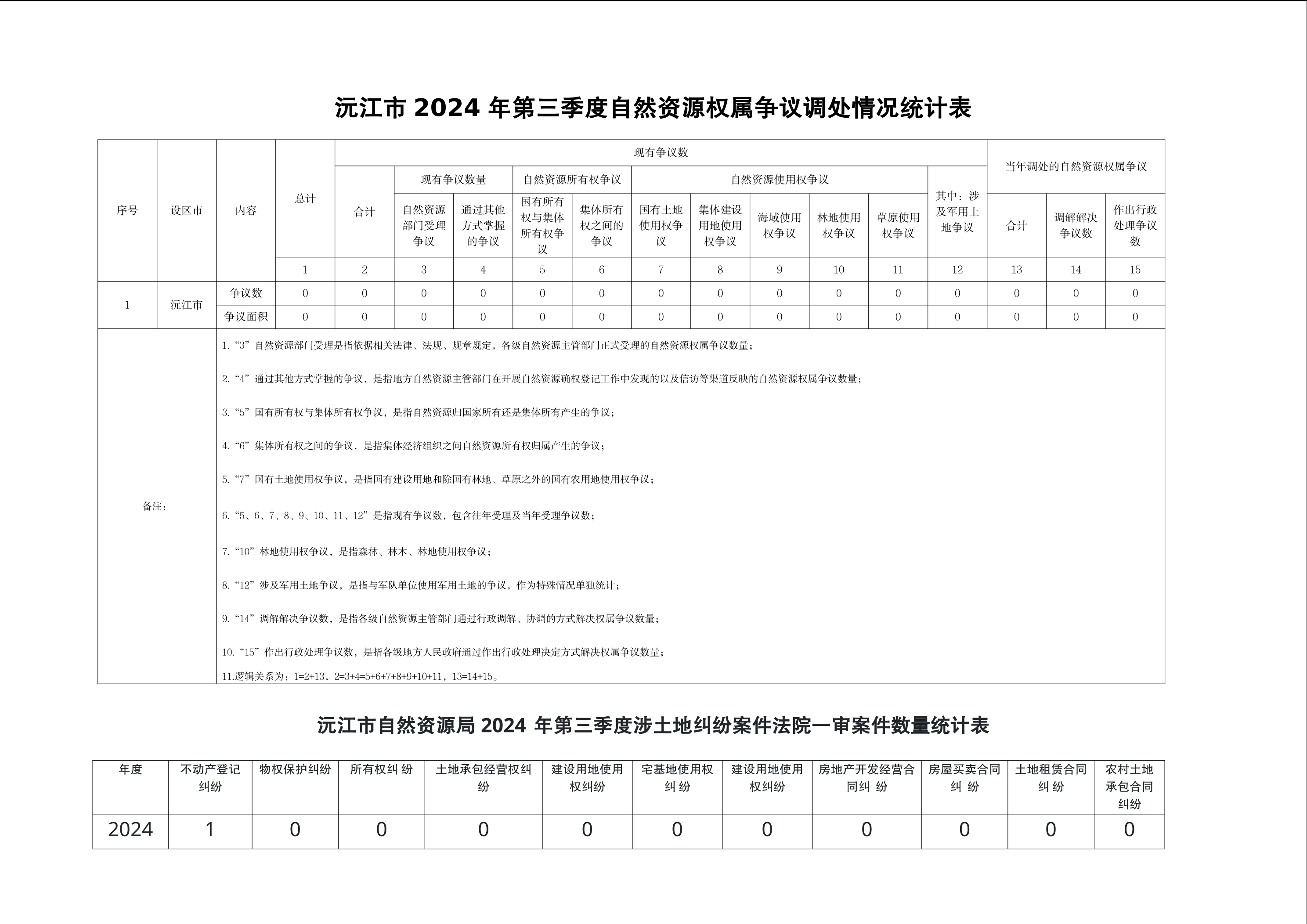 沅江市2024年三季度自然資源權屬爭議調處情況和涉土糾紛案件法院一審案件統計表