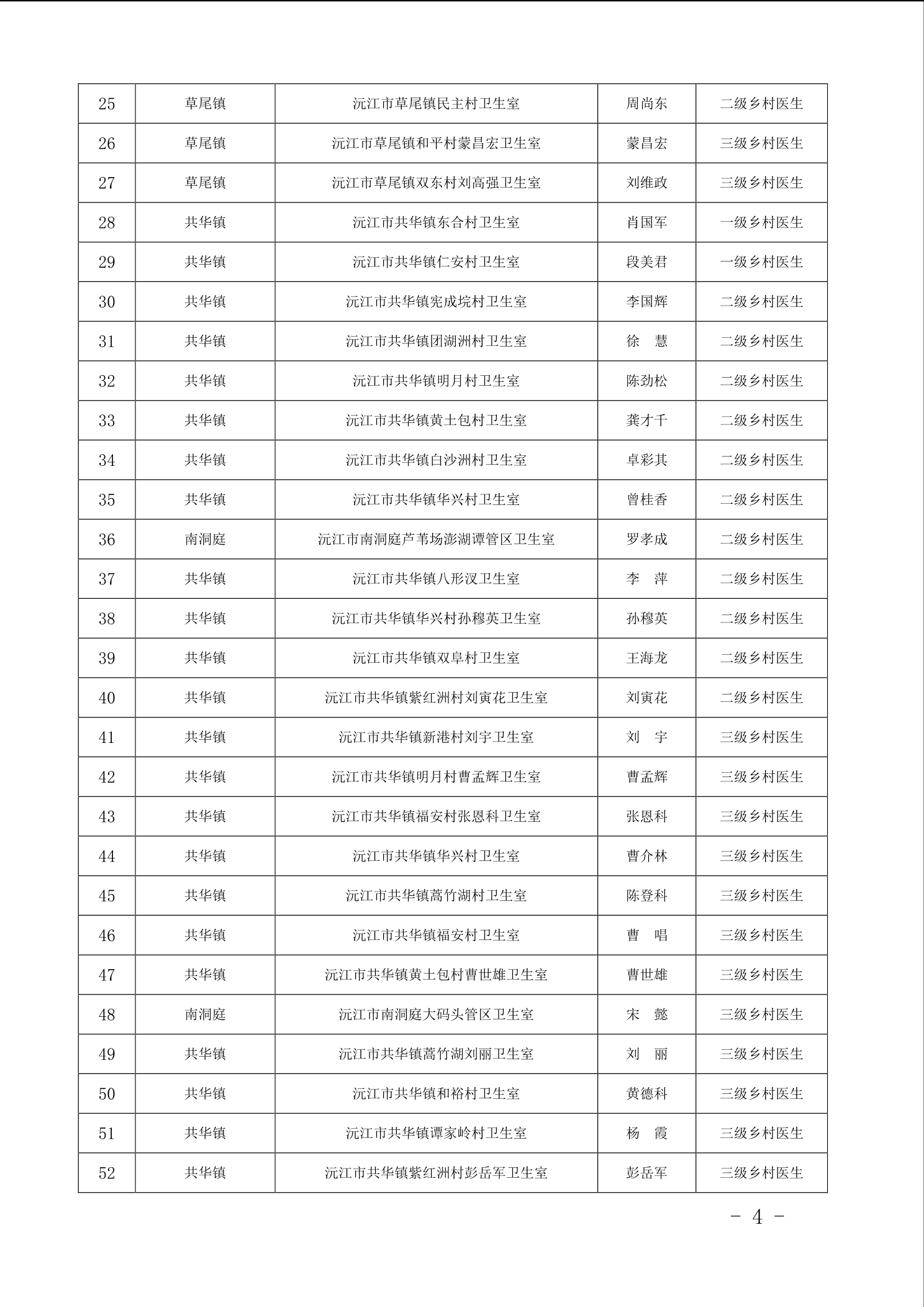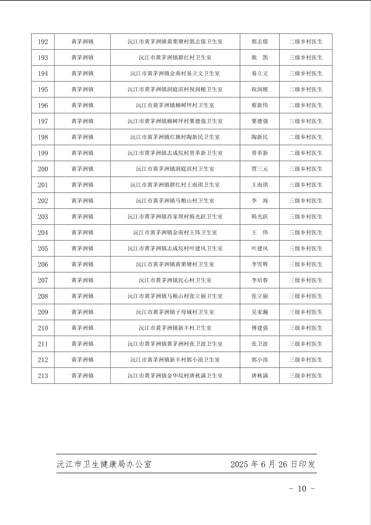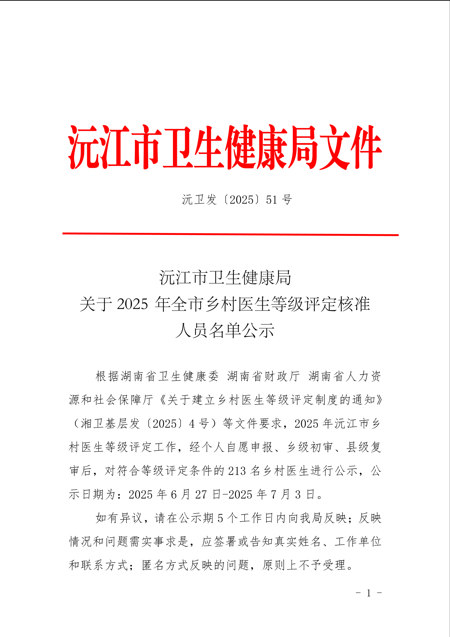 沅江市衛生健康局 關于 2025 年全市鄉村醫生等級評定核準 人員名單公示