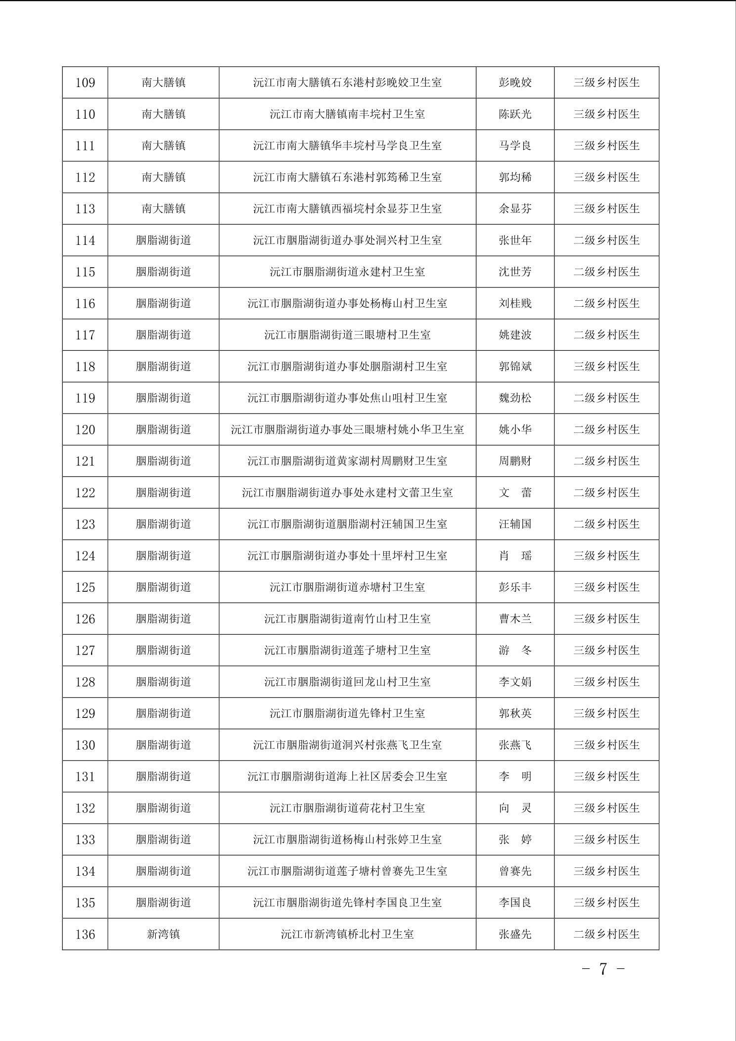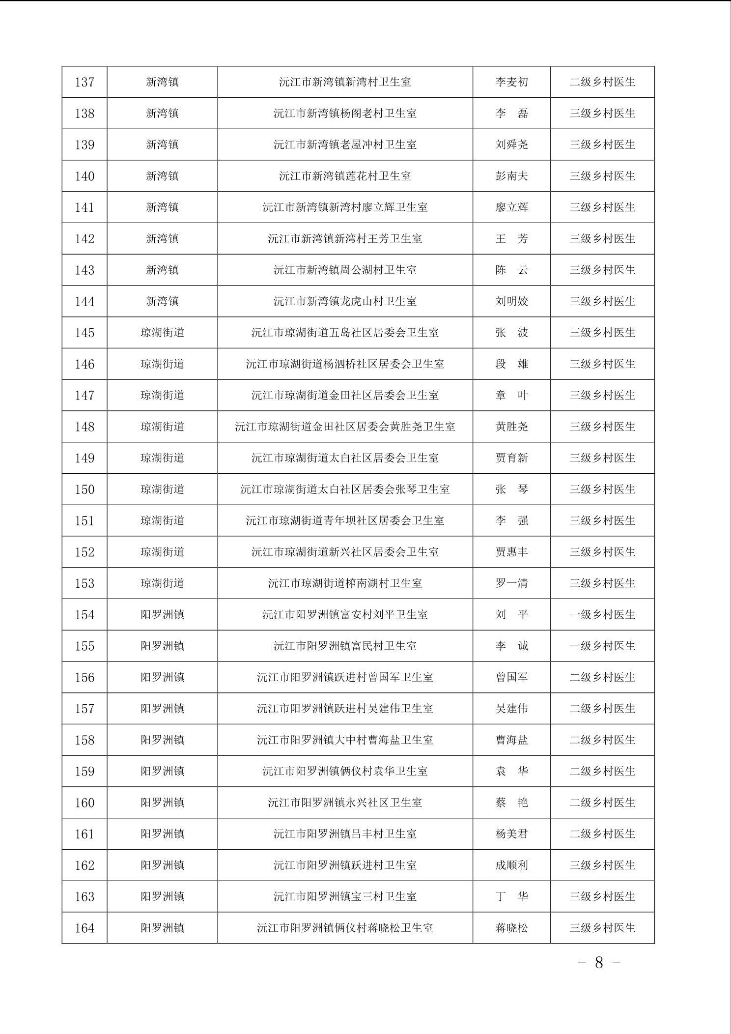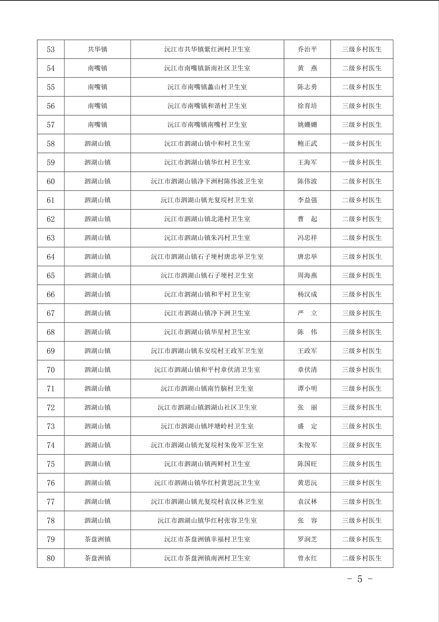 沅江市衛生健康局 關于 2025 年全市鄉村醫生等級評定核準 人員名單公示
