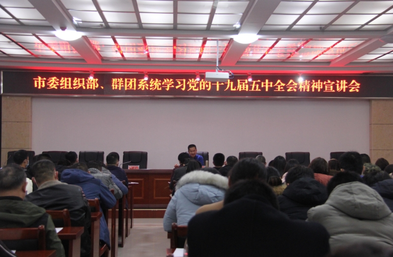 12月28日,組織群團系統舉辦學習黨的十九屆五中全會精神宣講會,市委常委、組織部長龍旺宇與大家一起參學。市委理論宣講團副團長唐順祥宣講黨的十九屆五中全會精神,市委組織部常務副部長郭照輝主持會議。