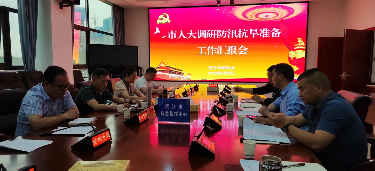 5月9日,調(diào)研組召開了座談會(huì)。在會(huì)上,市應(yīng)急管理局局長(zhǎng)羅建軍從去年工作回顧、今年形勢(shì)分析、前段備汛抗旱工作情況、后段工作安排等方面進(jìn)行了詳實(shí)匯報(bào)。市水利局副局長(zhǎng)曹天舒站在水利的角度指出了當(dāng)前防汛抗旱工作存在的問題,并提出了針對(duì)性建議。