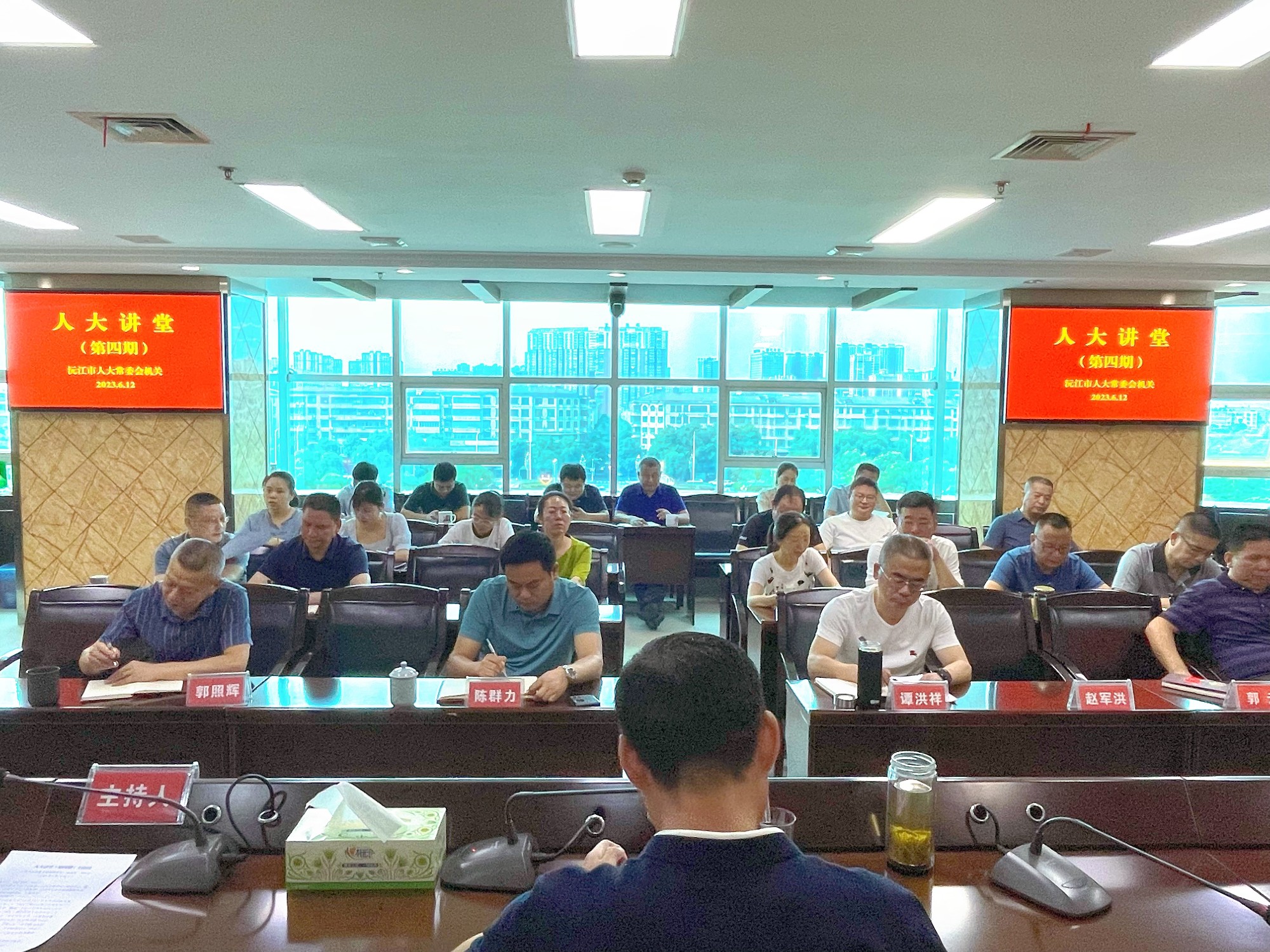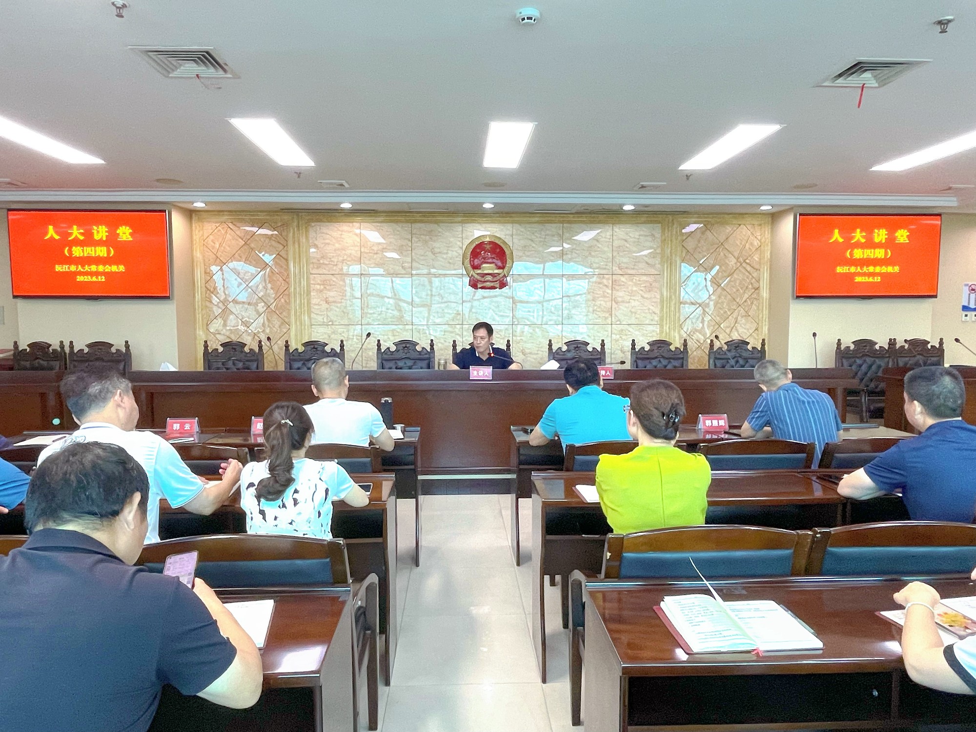 6月12日上午,市人大2023年第四期人大講堂開講,市人大常委會(huì)副主任趙軍洪授課,市人大常委會(huì)黨組副書記、副主任譚洪祥主持。
