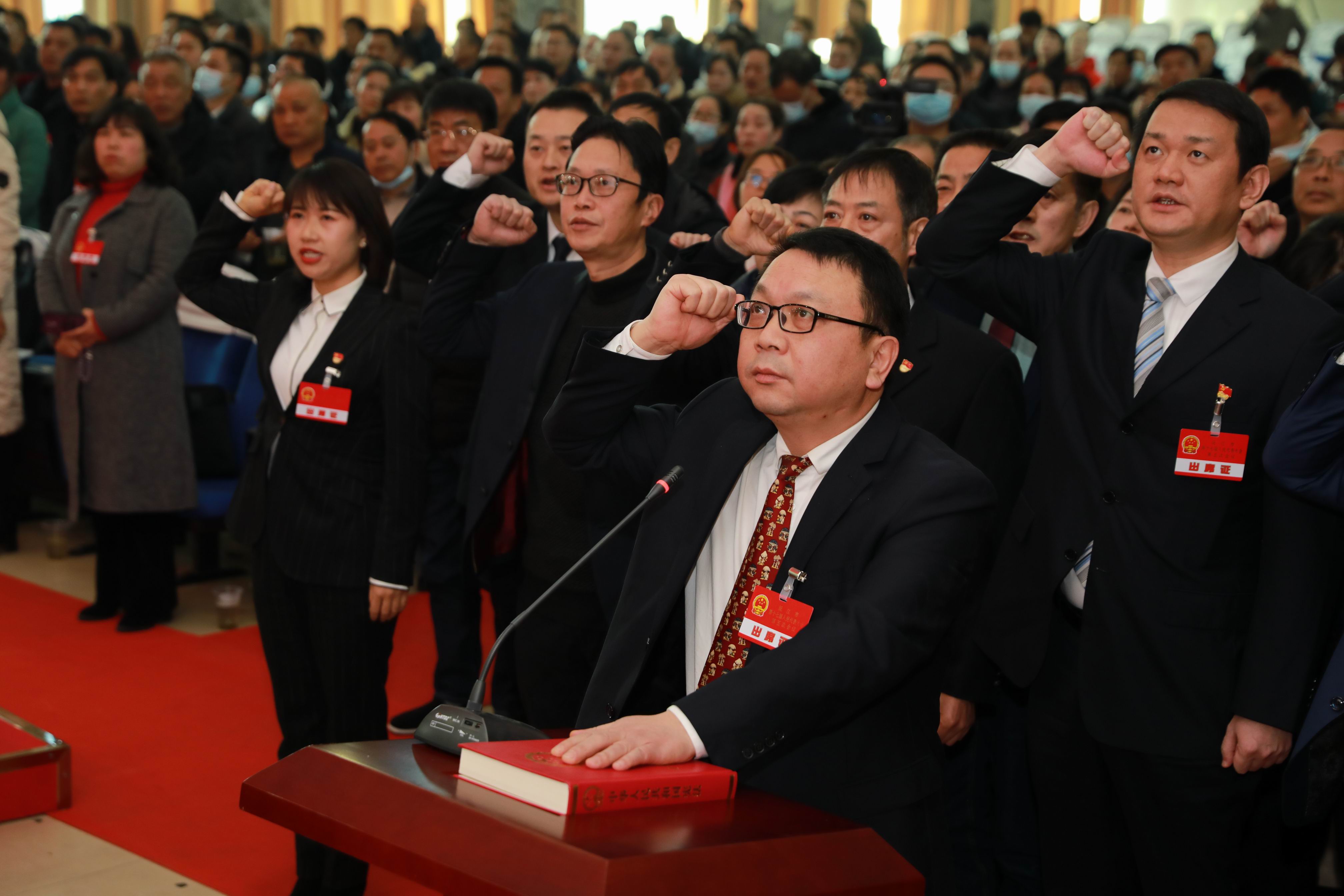 最后,依法律規(guī)定,舉行了新當(dāng)選、任命的國家機關(guān)工作人員向憲法宣誓儀式。 |