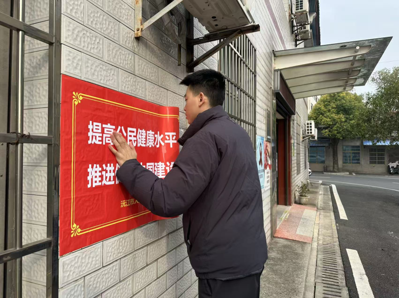 精心組織宣傳,營造健康法治氛圍。活動現場,代表與工作人員在鎮衛生院、血防院等公共服務場所醒目位置,張貼了印有“以人民為中心發展醫療衛生與健康事業”“提高公民健康水平推進健康中國建設”等標語的紅色宣傳海報,以簡潔有力的文字傳遞法律核心精神,形成視覺引導,增強宣傳感染力。