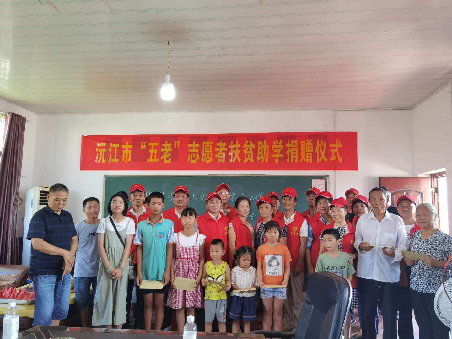8月4日上午,沅江市“五老”志愿者服務隊、市財政局老干志愿服務隊18名志愿者冒著酷暑赴胭脂湖街道楊梅山學校進行慰問。