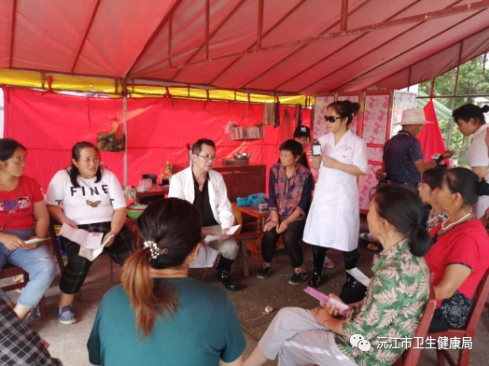 醫務人員對村民進行災后衛生健康知識宣講