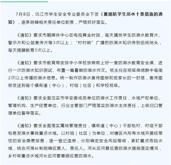 沅江市出臺(tái)嚴(yán)防學(xué)生溺水十條措施