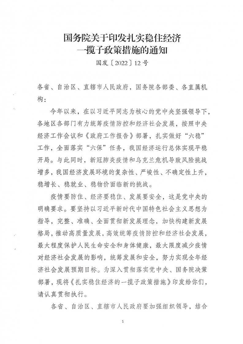 國務院關于印發扎實穩住經濟一攬子政策措施的通知