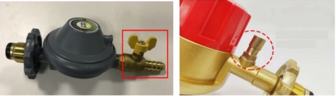 家用調壓器出口為軟管接頭(“寶塔頭”)時,應在進口側或出口側設置過流切斷安全裝置。(見圖7)
