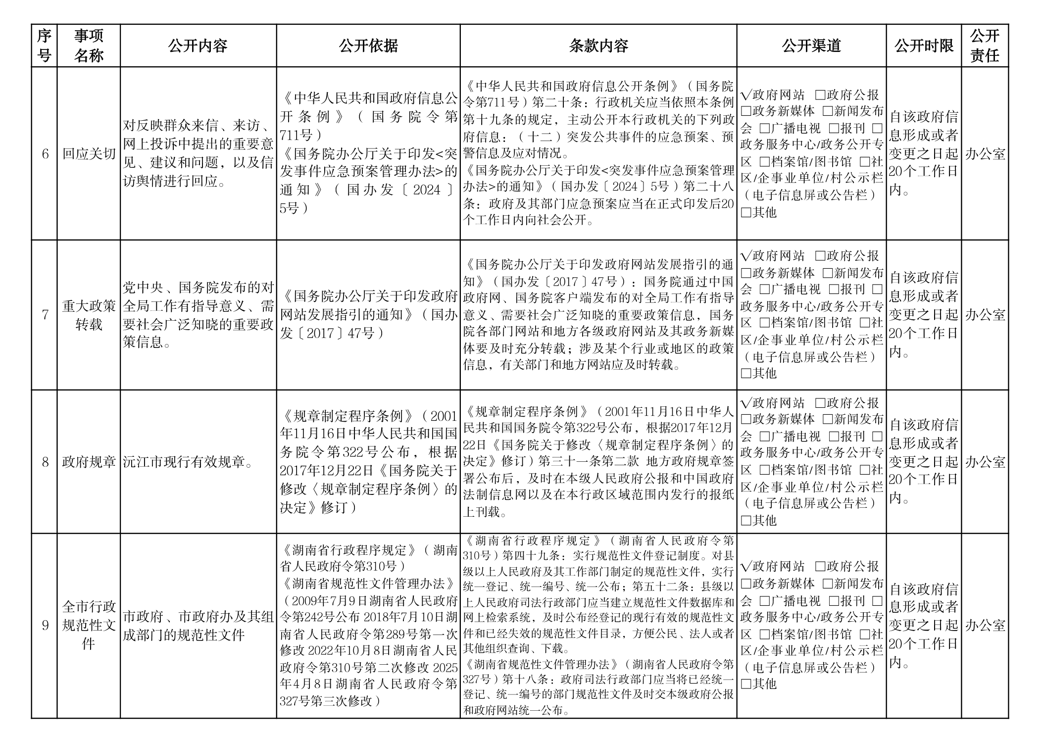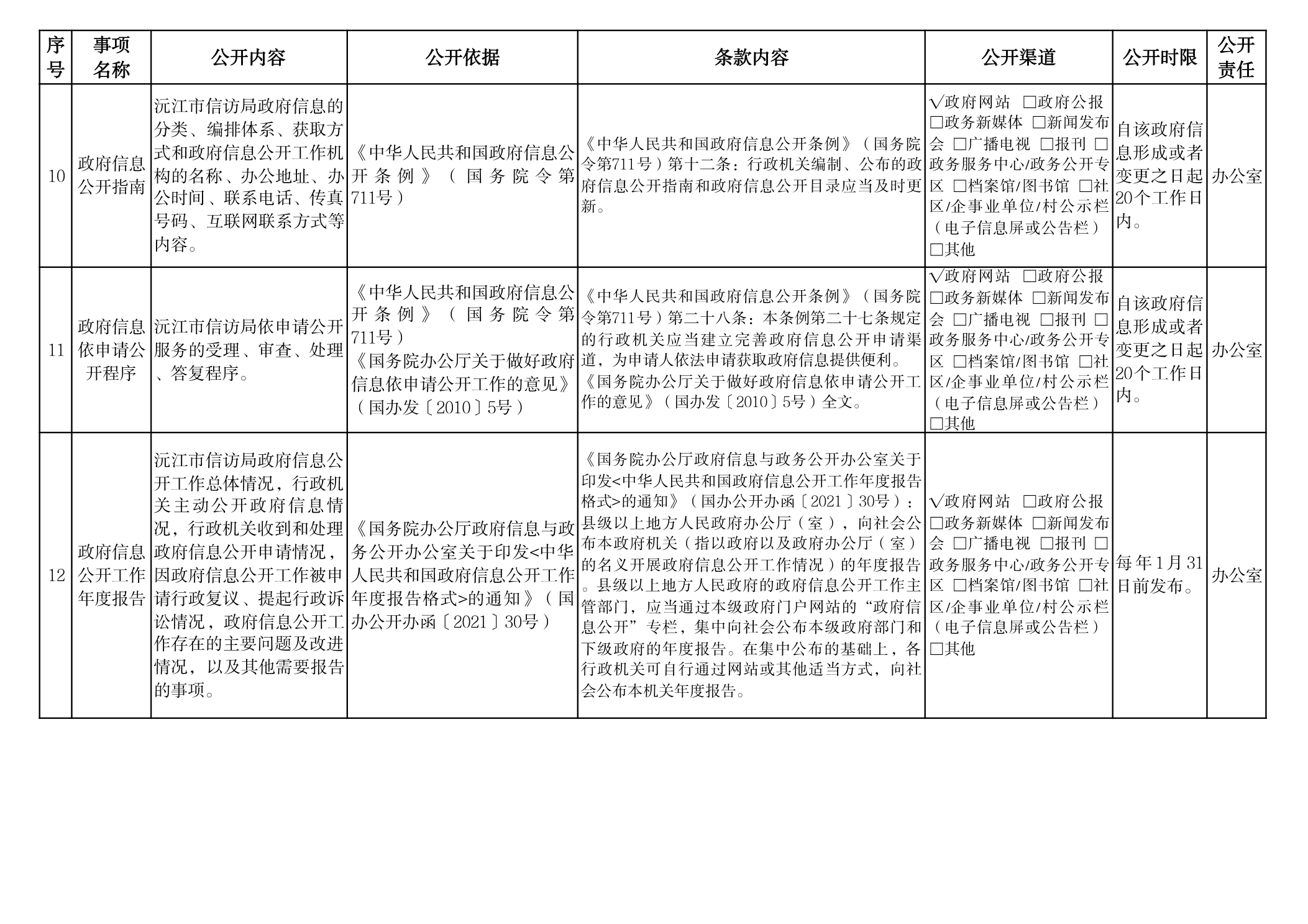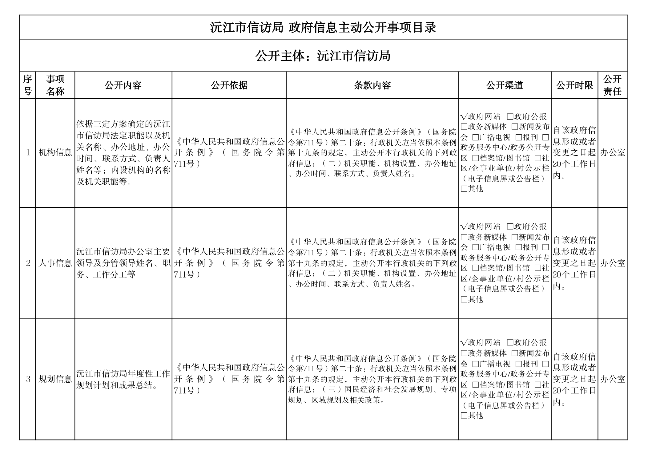 信訪局政府信息主動公開事項目錄