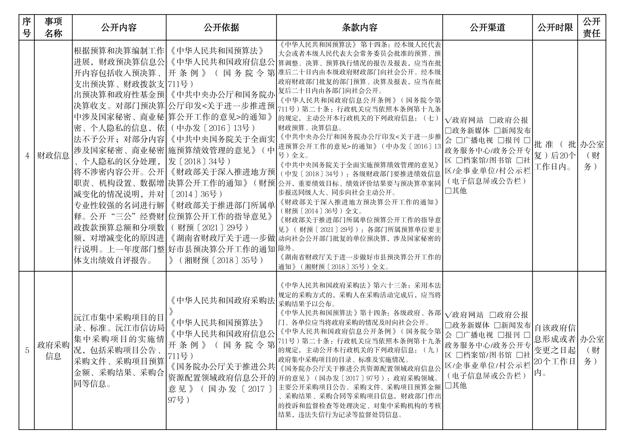 政府信息主動公開事項目錄