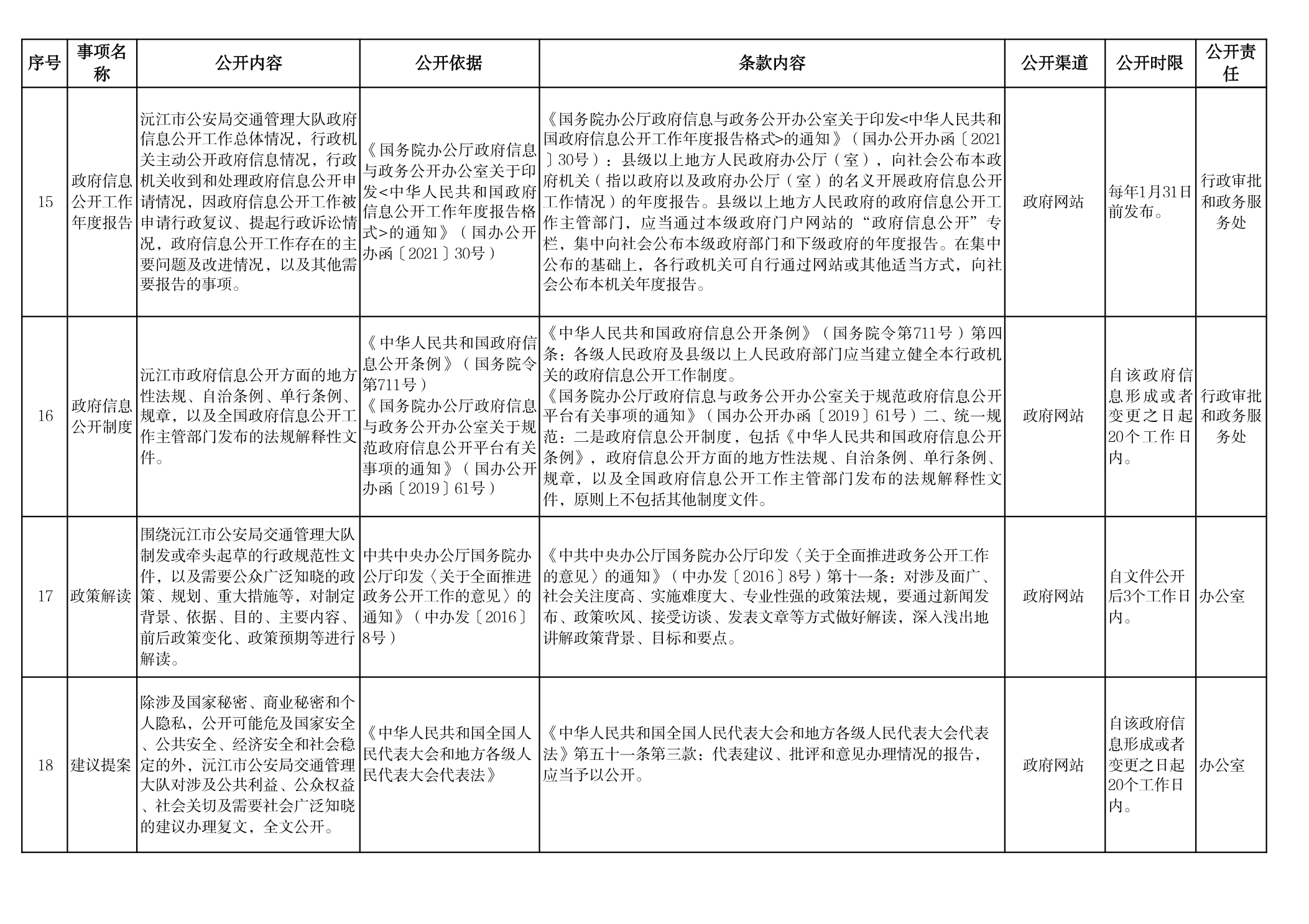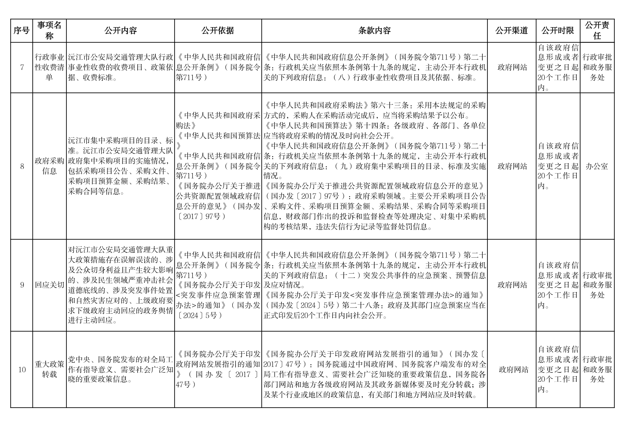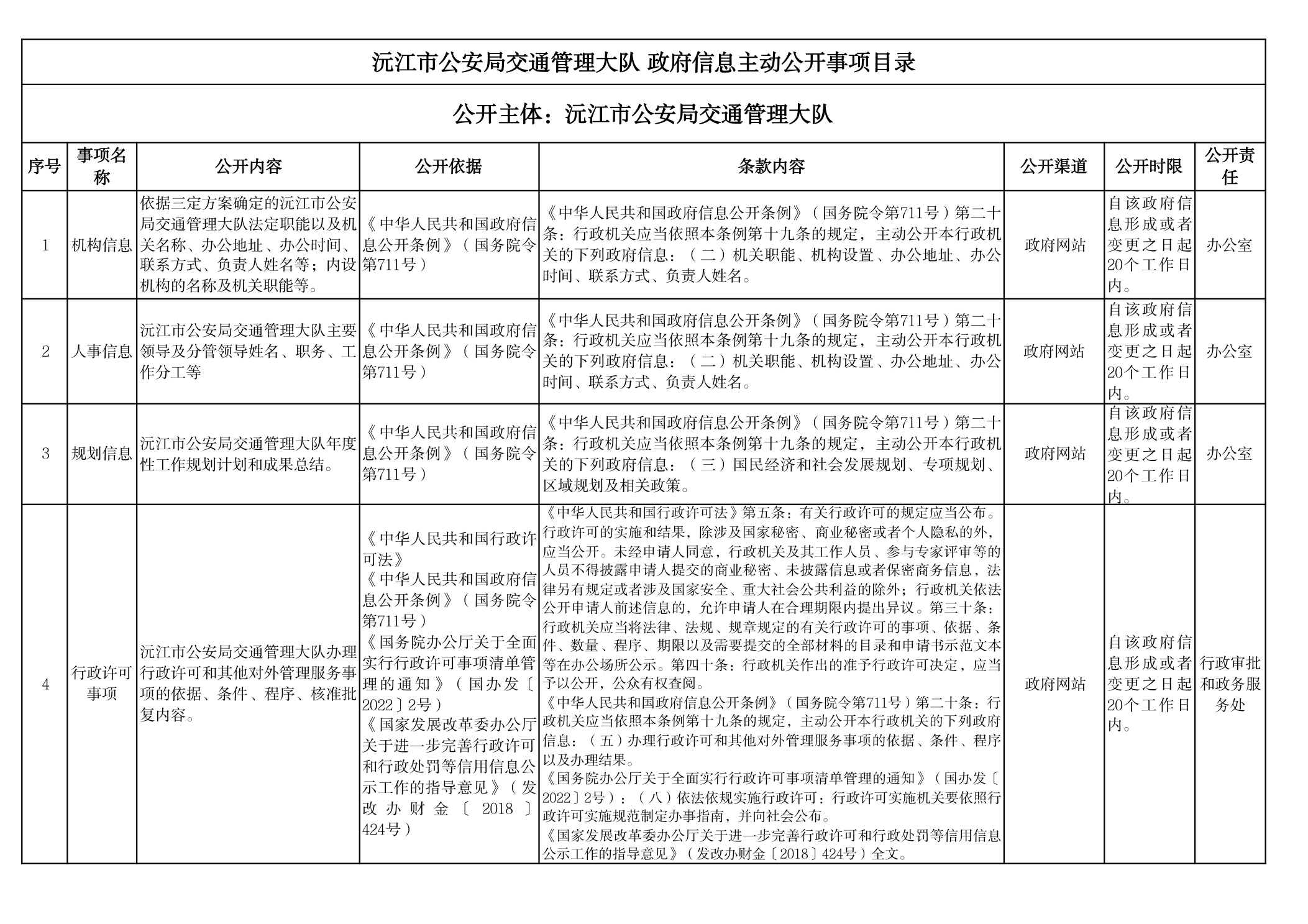 交警大隊(duì)政府信息主動(dòng)公開事項(xiàng)目錄