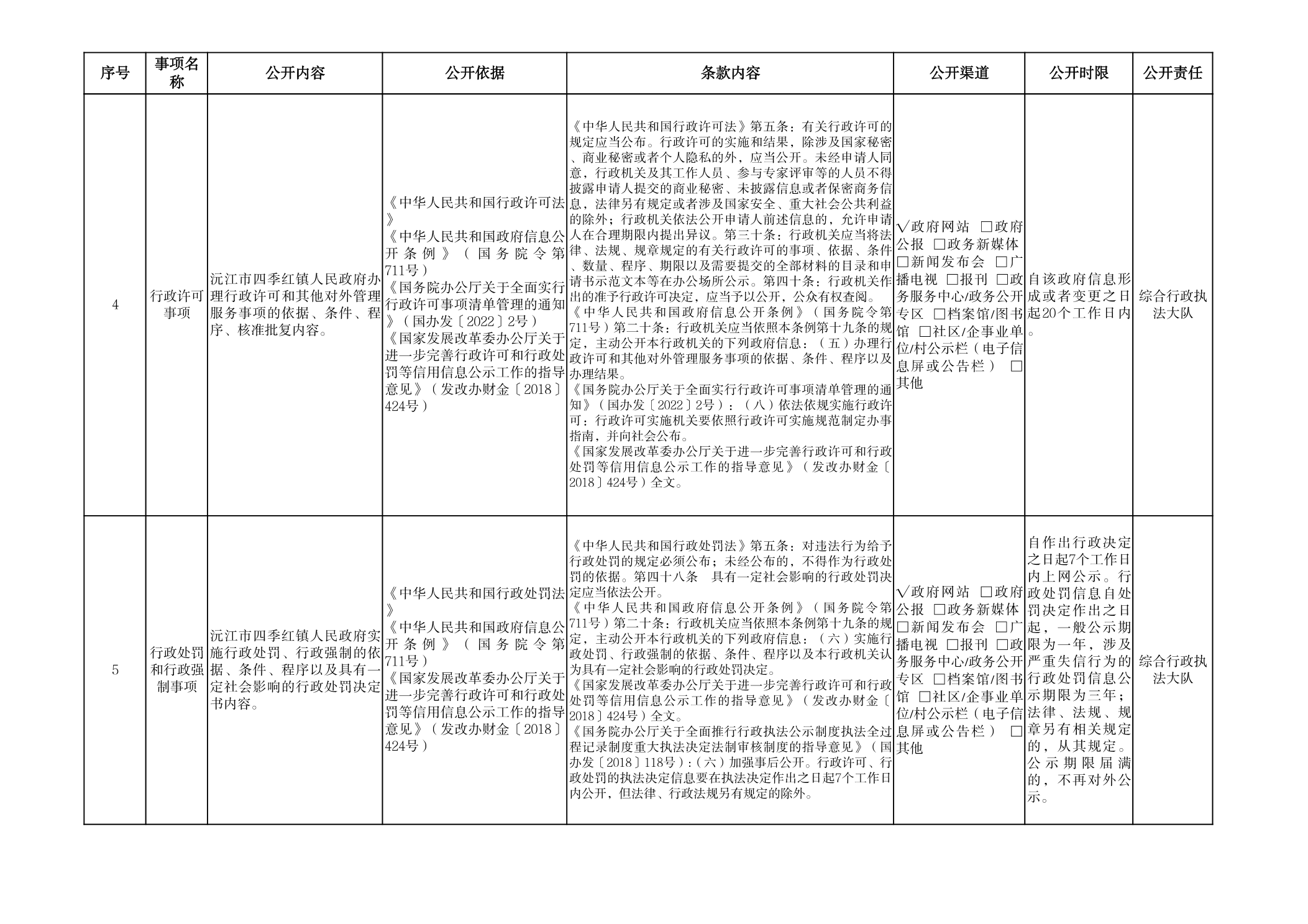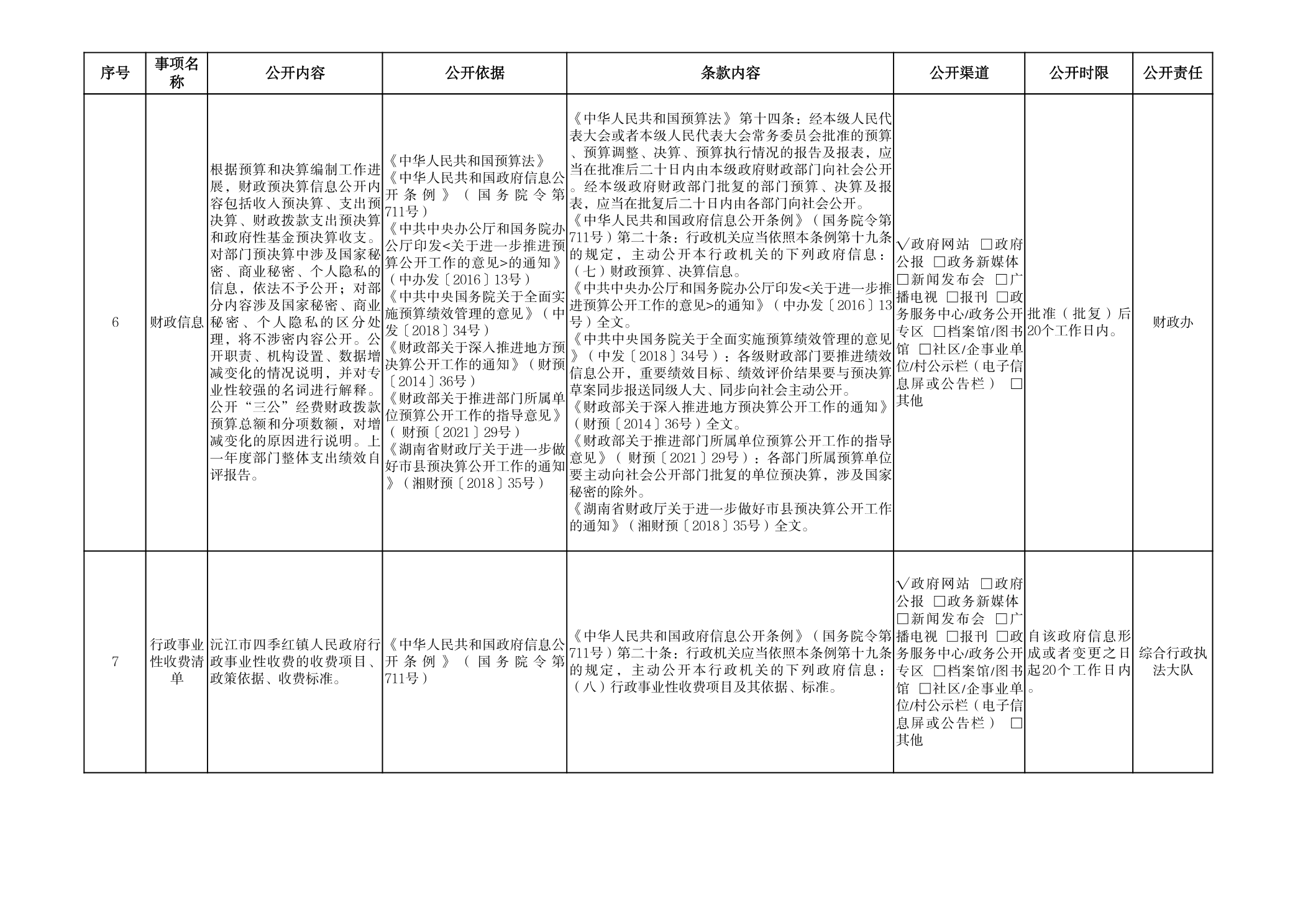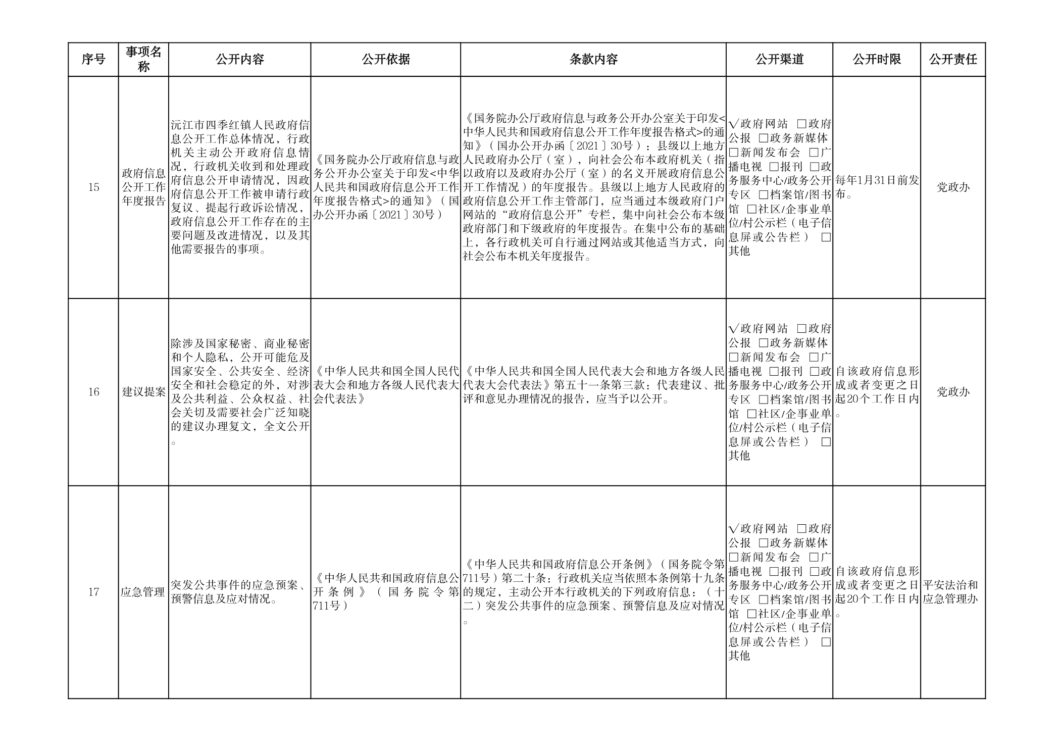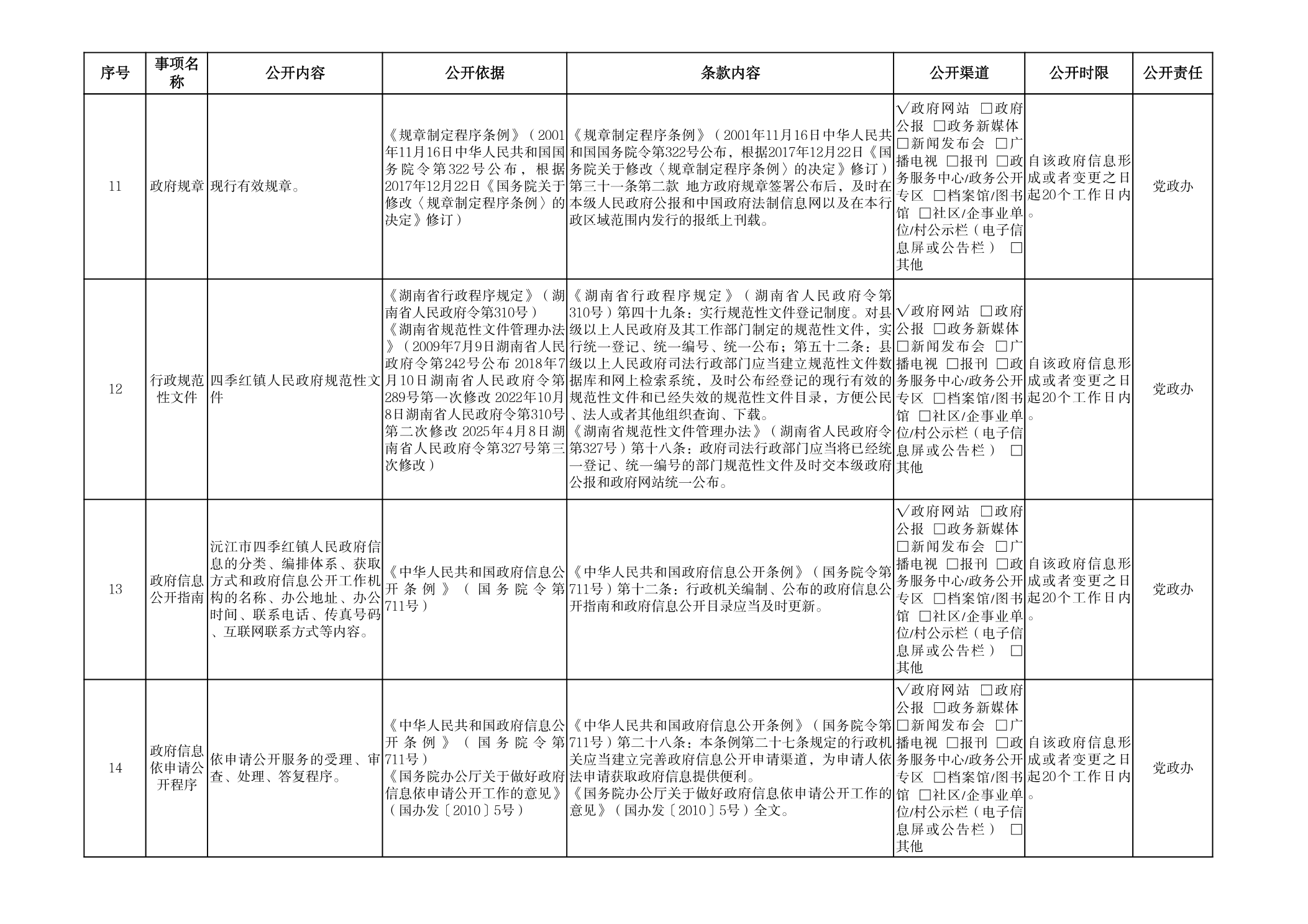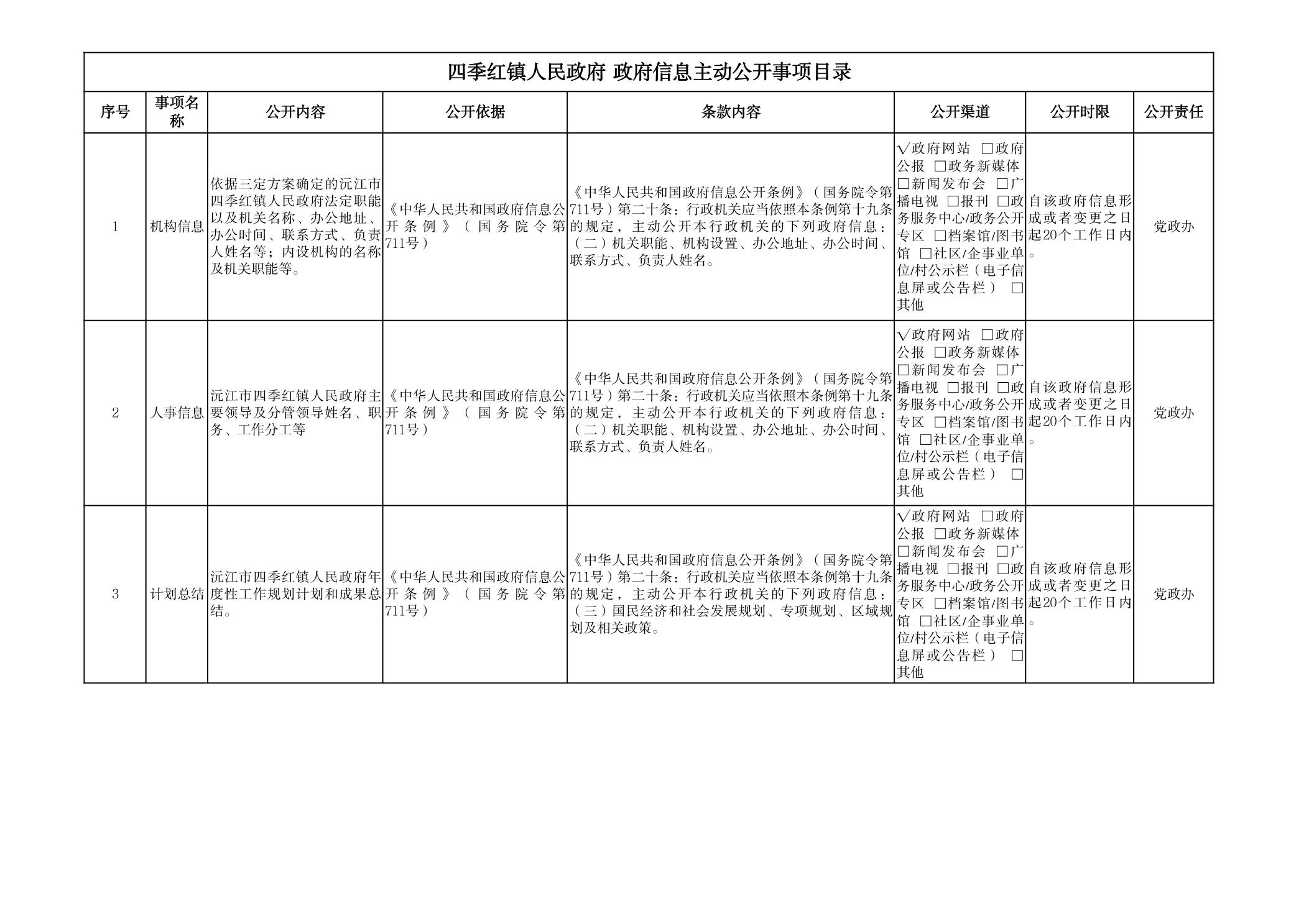 四季紅鎮人民政府政府信息主動公開事項目錄