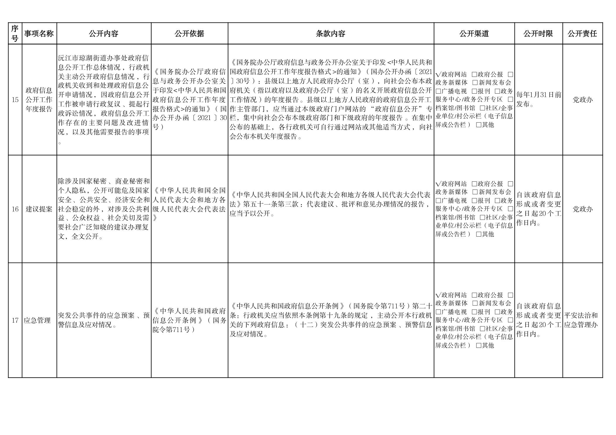 瓊湖街道辦事處政府信息主動公開事項目錄
