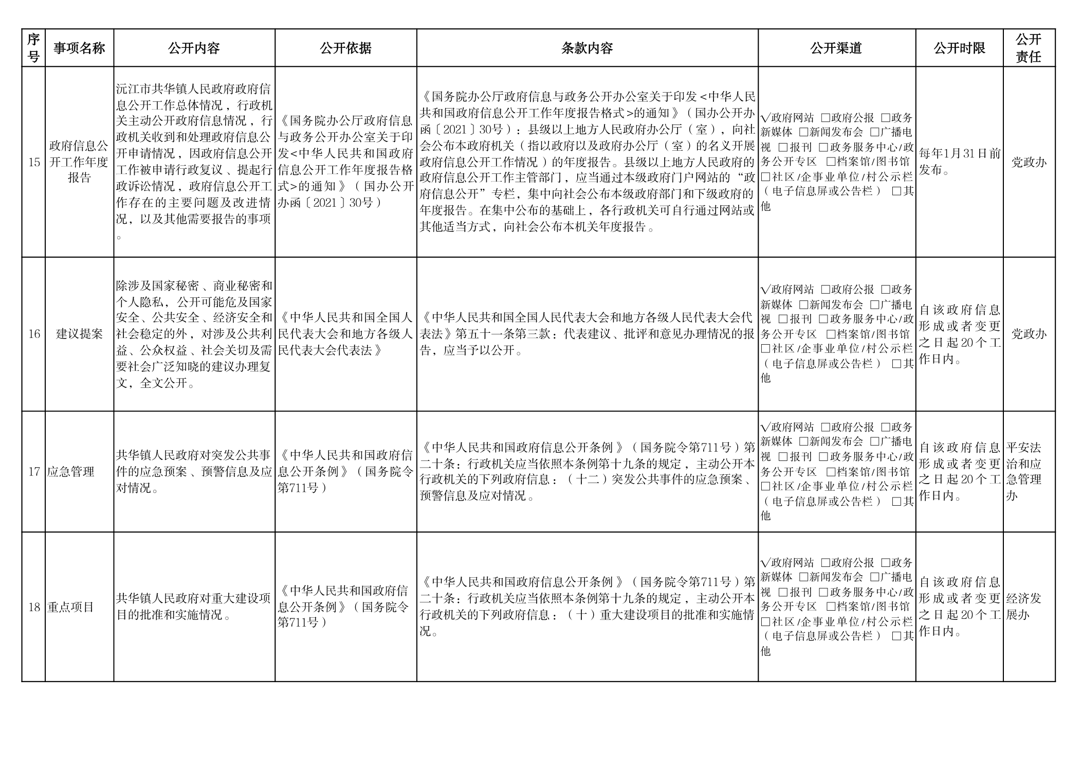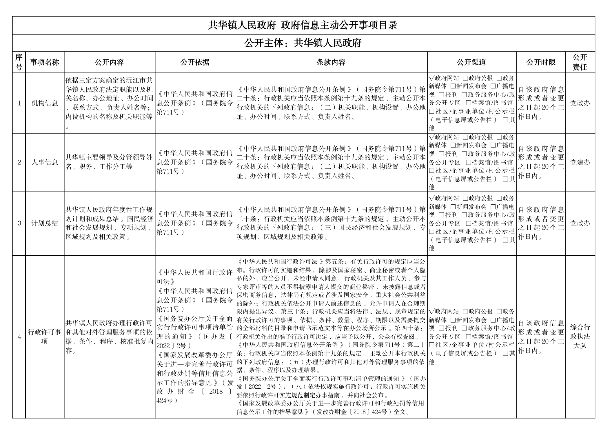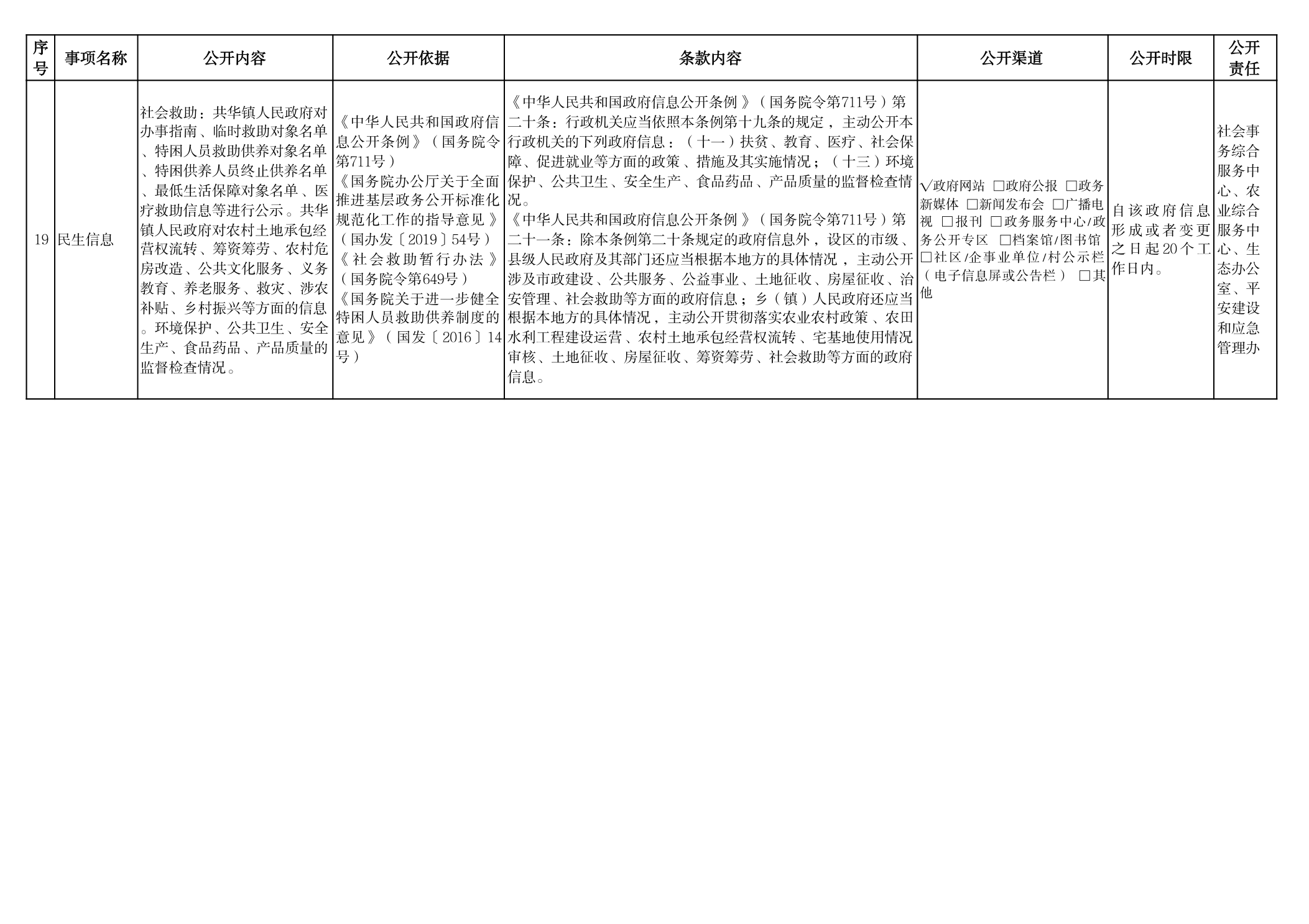 共華鎮人民政府 政府信息主動公開事項目錄
