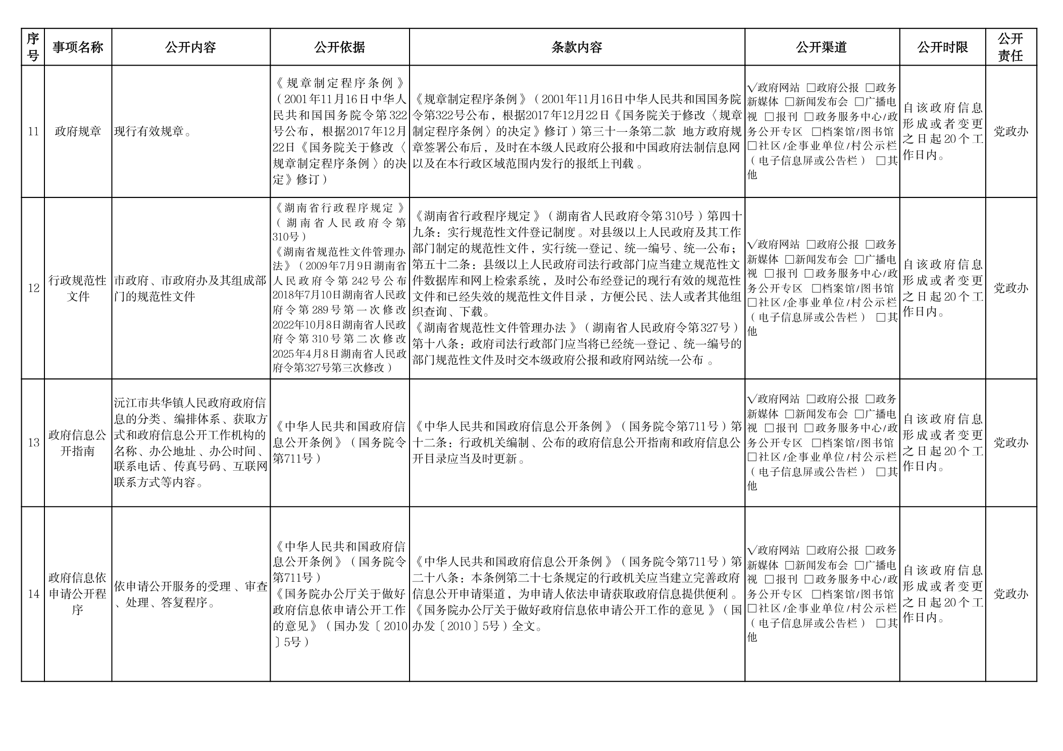 政府信息主動公開事項目錄