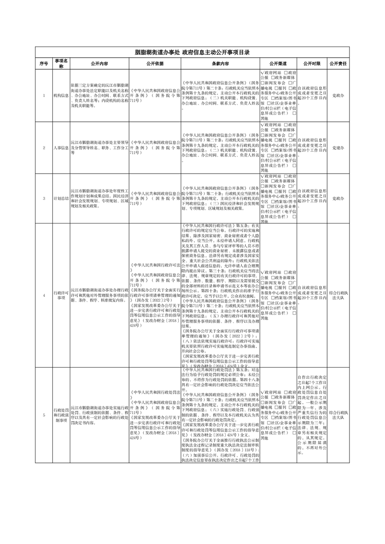 胭脂湖街道辦事處政府信息主動公開事項目錄