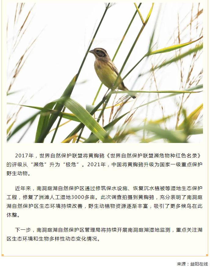 新發(fā)現(xiàn)!50余只黃胸鹀現(xiàn)身南洞庭湖,為世界極危物種