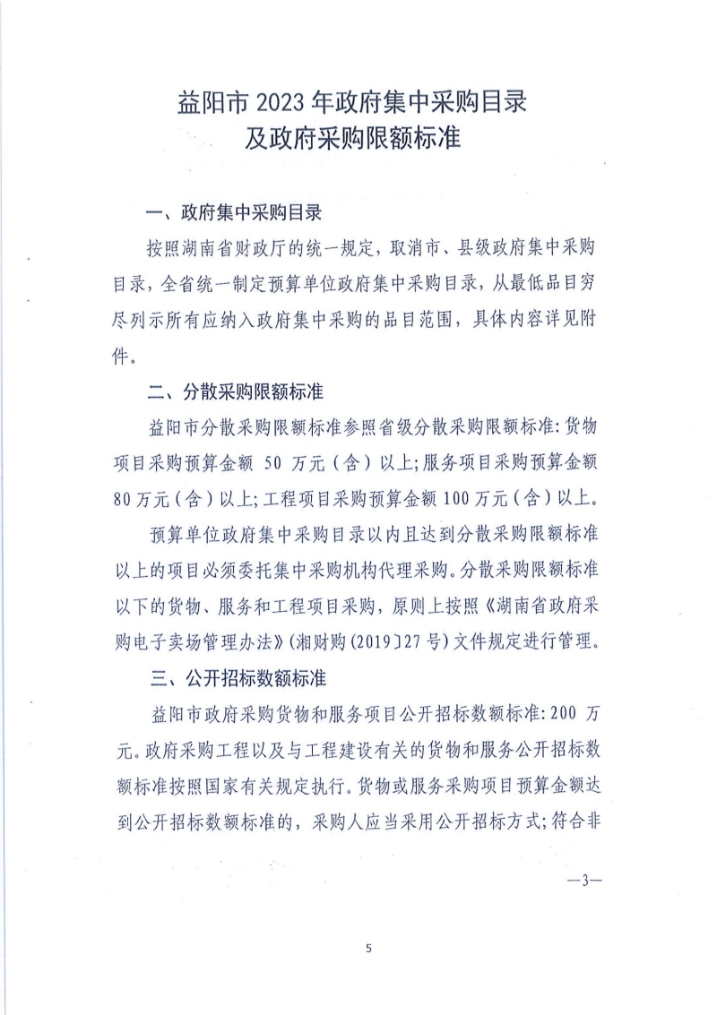 沅江市財政局關于轉發《益陽市財政局關于印發益陽市2023年政府集中采購目錄及政府采購限額標準的通知》的通知