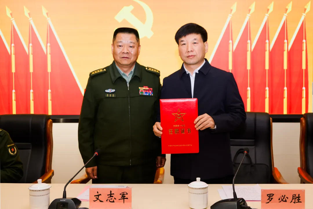 會上,文志軍宣讀任職通知、頒發任職證書,羅必勝擔任沅江市人武部黨委第一書記。