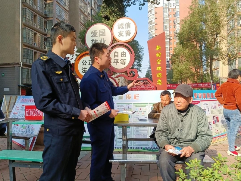 當天上午,聯合宣傳小組在沅江桔城世家新時空小區向來往居民發放消防安全手冊,為他們科普消防安全知識。面對居民的詢問,聯合宣傳小組還仔細介紹了面對緊急火情發生時,該如何采取正確的消防措施。除此之外,他們還在小區內樹立了關于消防知識的宣傳牌,營造出濃厚的消防知識宣傳氛圍,讓路過的居民隨時可以看到,學習到,真正的做到了讓消防知識深入人心。