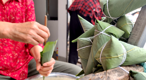 張新春告訴記者,兒女們都在外發展,不能回家團聚,所以自己親手包粽子,讓家人吃到家鄉味道的同時也表達了自己對孩子們節日的祝福。