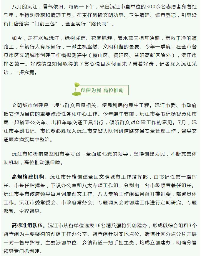 何以賞心悅目——沅江市文明城市創建工作綜述