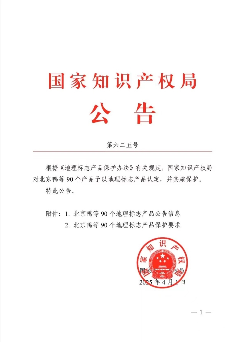 4月1日,國家知識產權局發布第六二五號公告,對“沅江蘆筍”等90個產品予以地理標志產品認定,并實施保護。