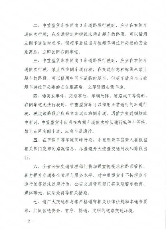 關(guān)于湖南省高速公路實(shí)施中重型貨車靠右通行交通管理措施的通告