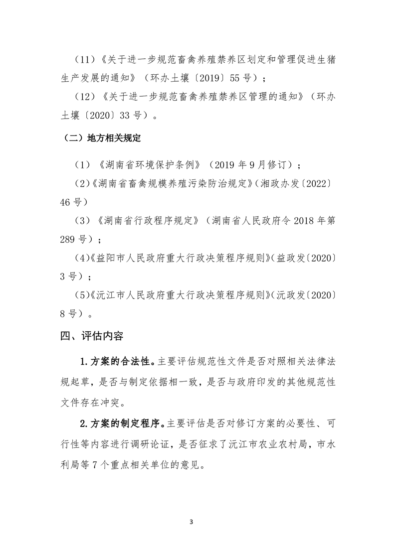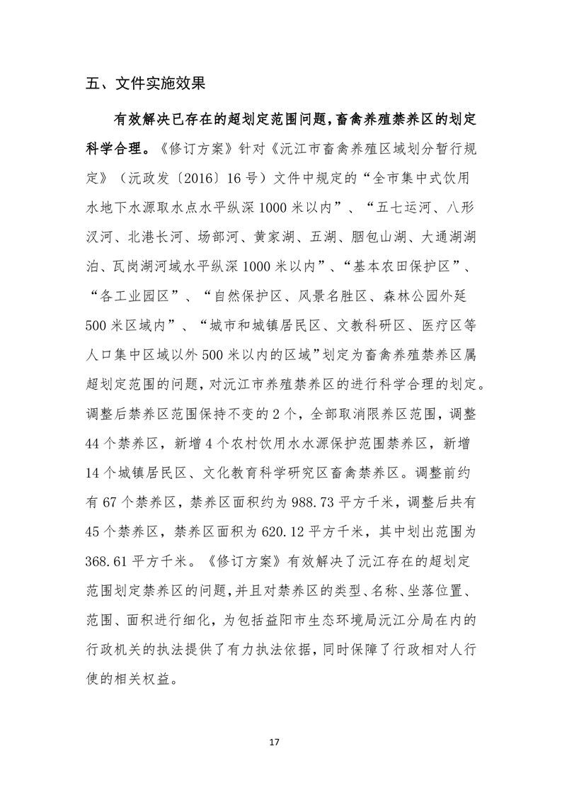 《關于修訂〈沅江市畜禽養殖禁養區 劃定方案〉的通知》后評估報告