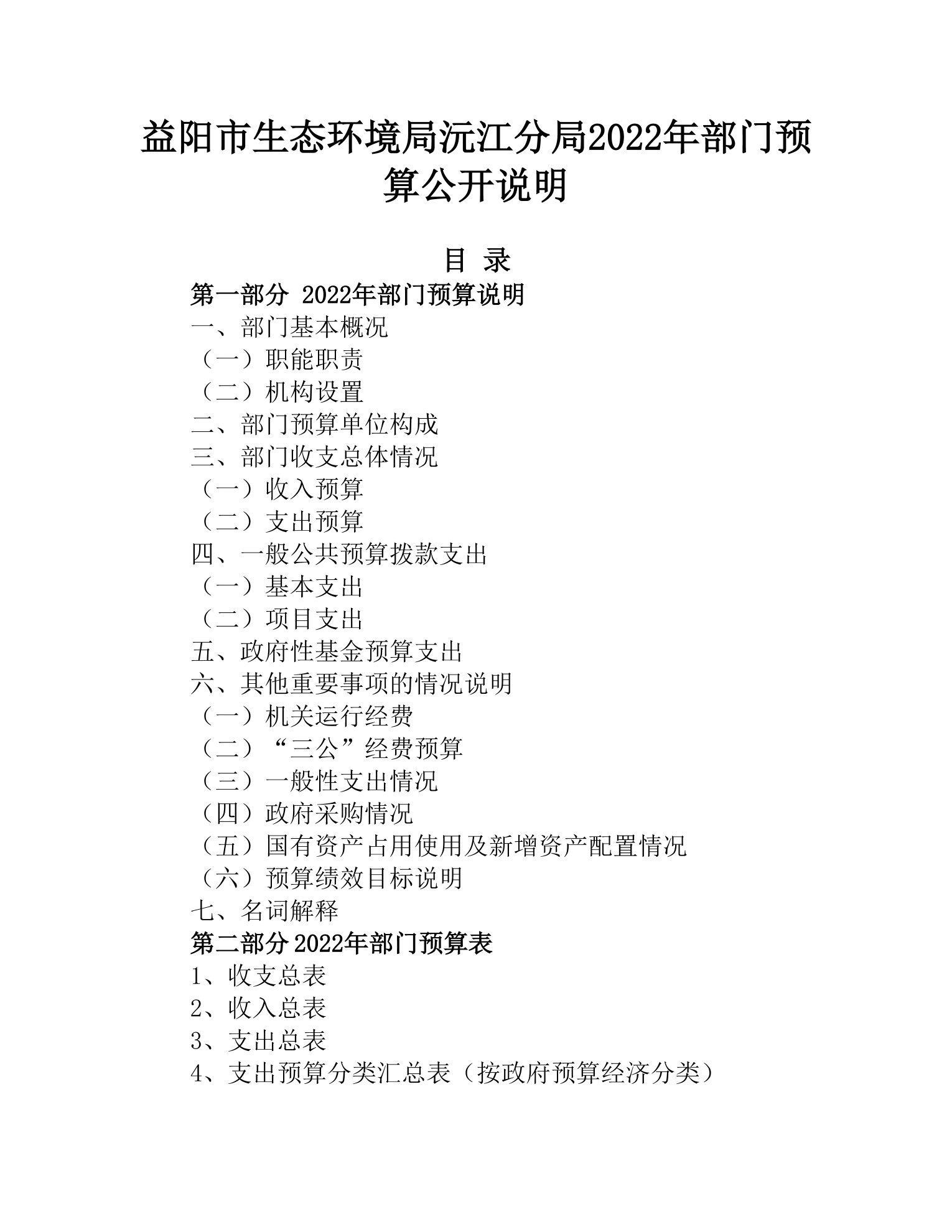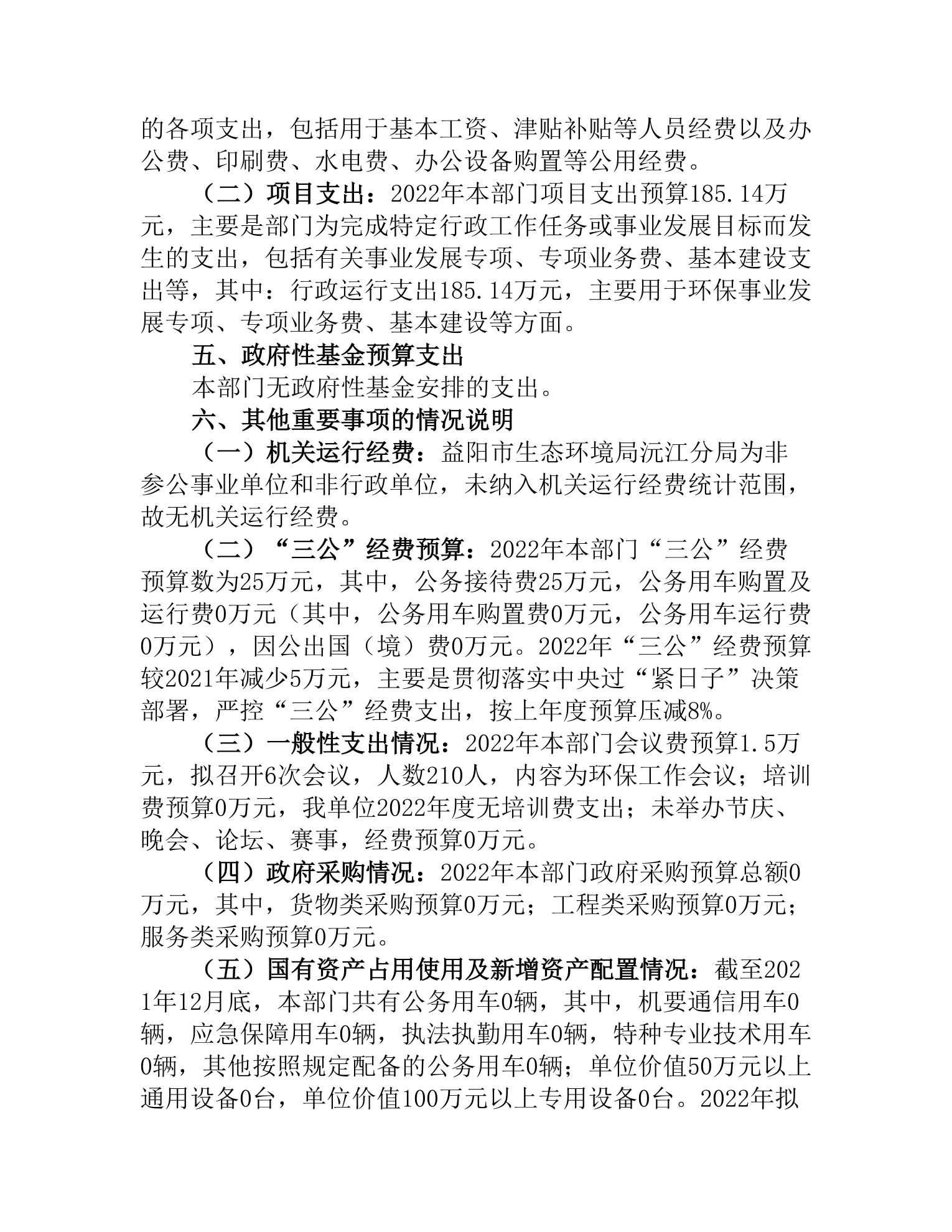 益陽(yáng)市生態(tài)環(huán)境局沅江分局2022年部門預(yù)算公開說明