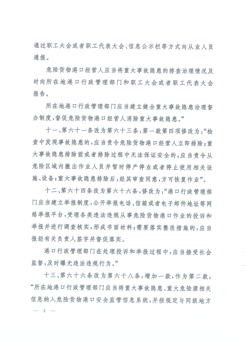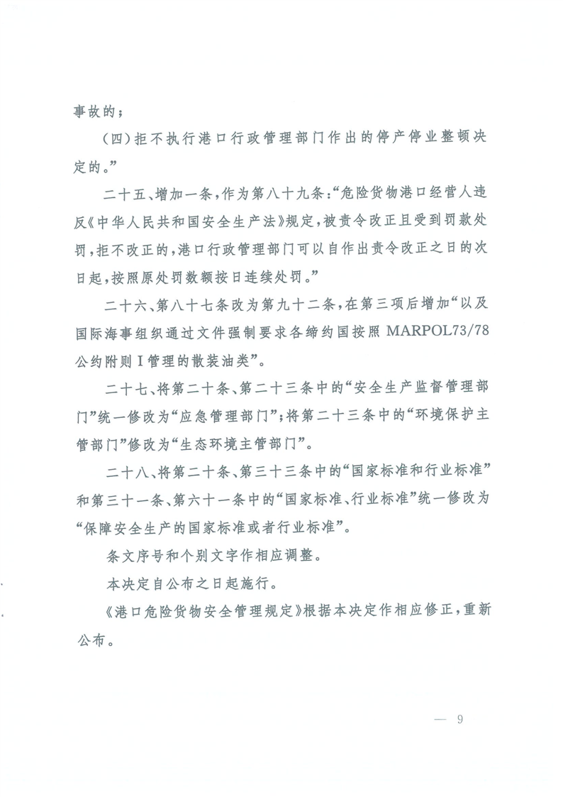 交通運輸部關于修改《港口危險貨物安全管理規定》的決定