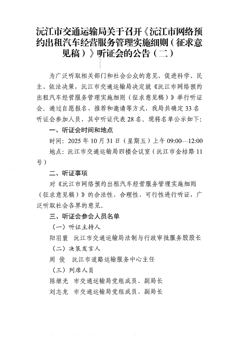 沅江市交通運輸局關于召開《沅江市網絡預約出租汽車經營服務管理實施細則(征求意見稿)》聽證會的公告(二)