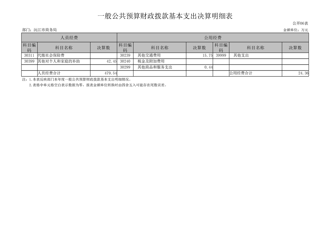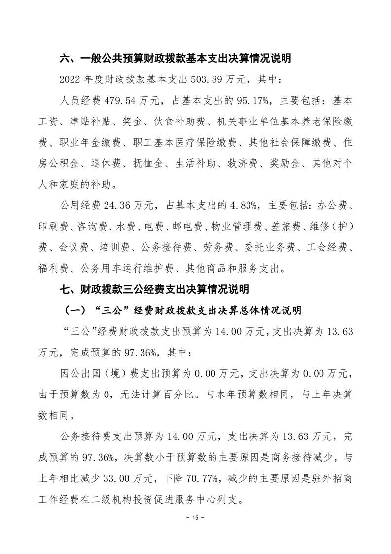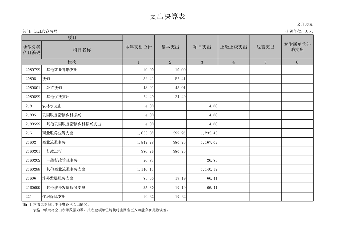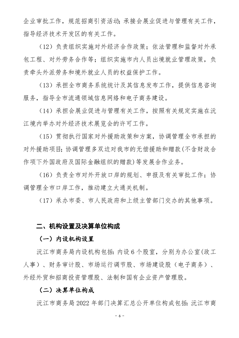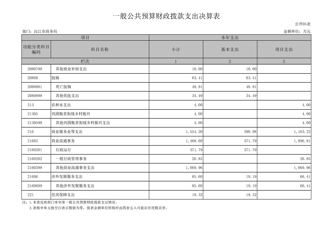2022年沅江市商務局部門決算