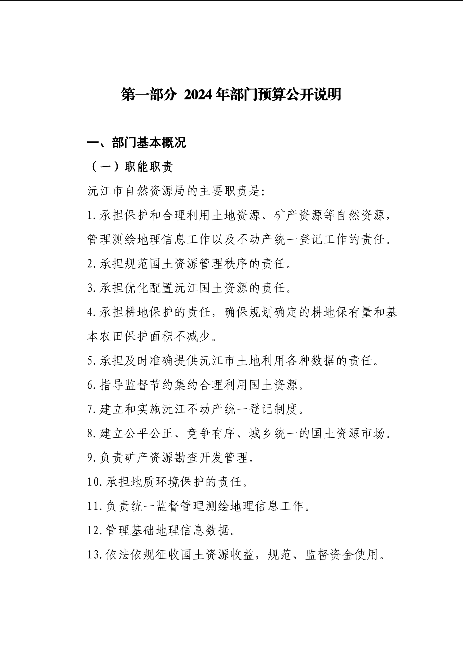 2024年沅江市自然資源局部門預算公開