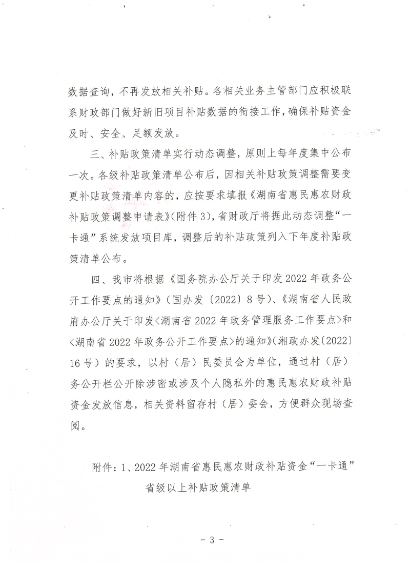 關于公布2022年惠民惠農財政補貼政策清單的通知