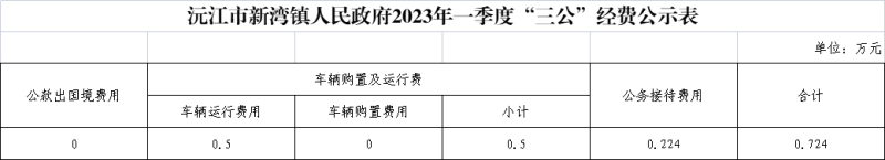 沅江市新灣鎮人民政府2023年一季度“三公”經費公示表