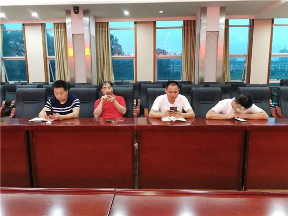 6月9日晚,沅江市機關事務服務中心工作人員齊集視頻會議室,一人手捧著一部手機,聚精會神地把玩著。有的人緊皺眉頭,有的人若有所思,有的人撓首抓耳.......黨組書記、主任楊成梁不但不制止,也忘我地“玩”著手機。