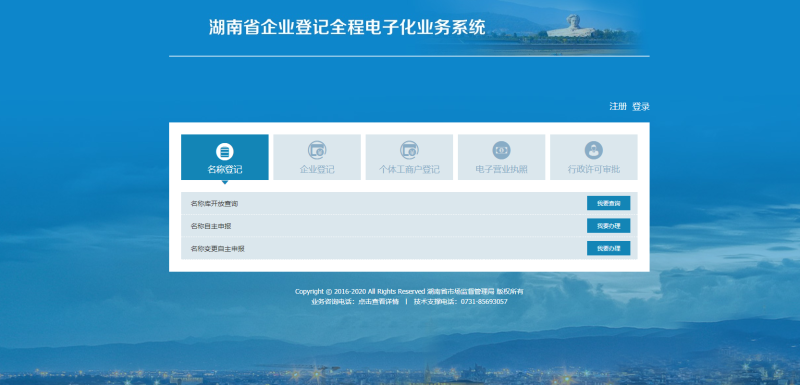 辦理涉及內資企業主體設立、變更、注銷類政務服務事項,登錄“湖南省企業登記全程電子化系統”(http://222.240.225.75:8004/bsdt/) |
