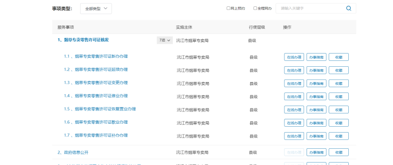 政務服務大廳政務服務事項網辦渠道