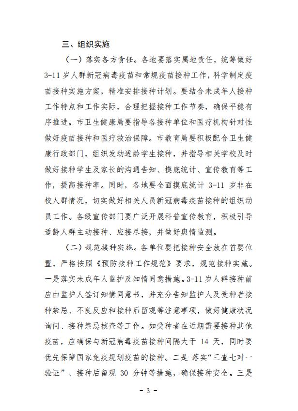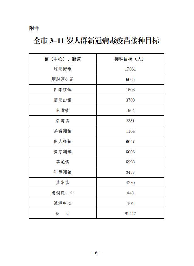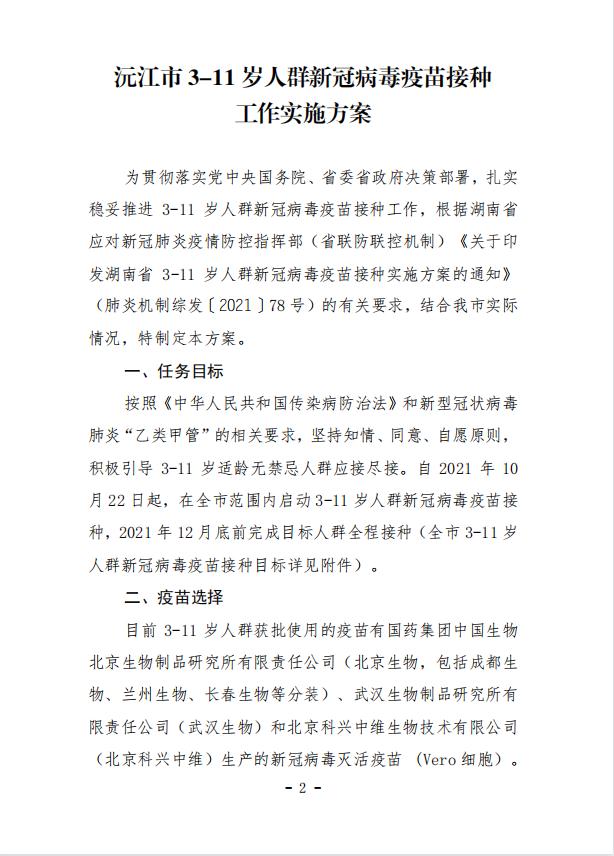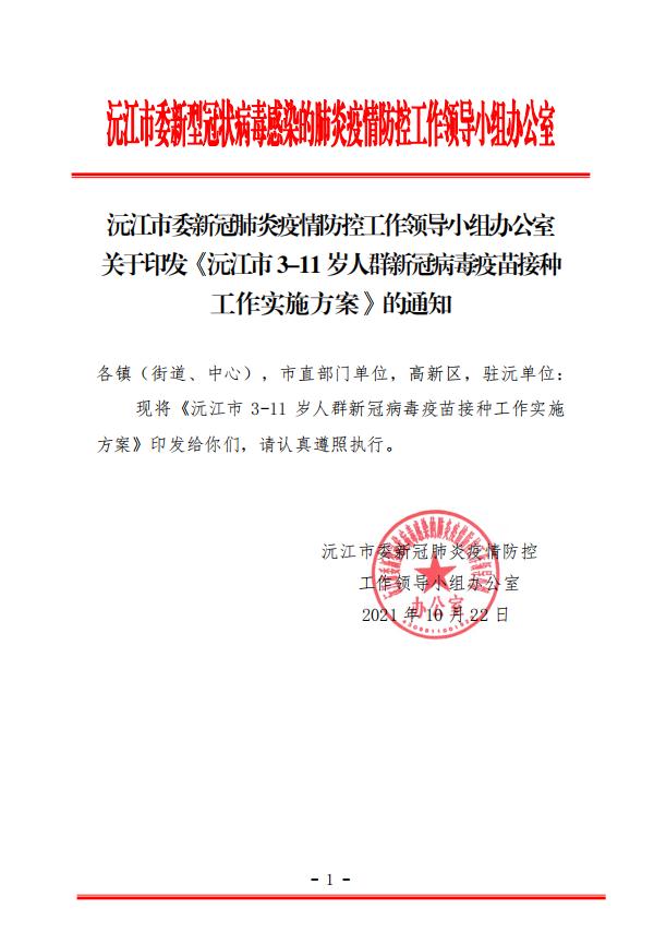 沅江市委新冠肺炎疫情防控工作領導小組辦公室 關于印發《沅江市3-11 歲人群新冠病毒疫苗接種 工作實施方案》的通知