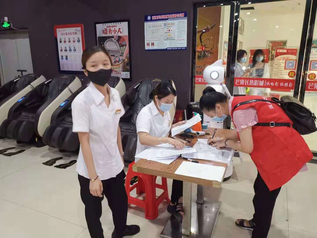此外,該大隊還抽調內勤人員組成文化志愿者隊伍,到影院、星級賓館協助工作人員開展測體溫、“三碼”協查、收集未接種人員信息等疫情防控工作。