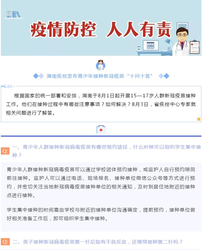 湖南疾控發(fā)布青少年接種新冠疫苗“十問十答”