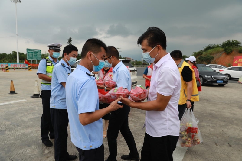在沅江北高速、草尾互通高速以及保民大橋等設卡點,愛心企業工作人員和市紅十字會的志愿者們將新鮮的水果送到了防疫一線工作人員手中,愛心企業工作人員考慮到一線工作人員工作的不方便,特意將所有的水果洗凈并切裝好,這樣既方便食用,同時對防疫一線工作人員堅守崗位、守護家鄉的辛勤付出表示感謝。