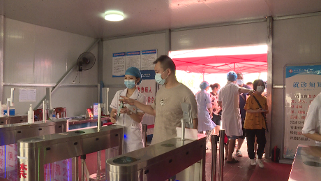排隊進入后,首先由專業的醫護人員對進入醫院的所有人員進行人工體溫檢測、查看健康碼等。兩者均為正常后,還必須掃描健康碼以及身份證才能通過電子關卡進入醫院。