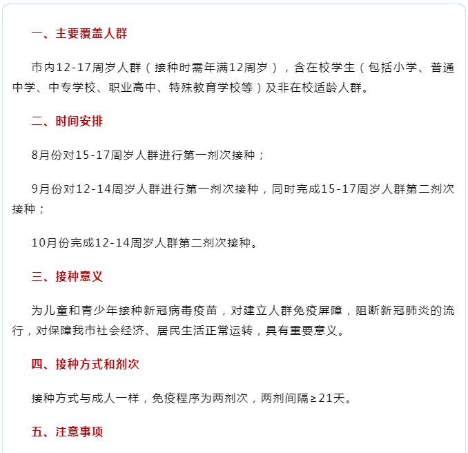 溫馨提示 | 12-17周歲兒童、青少年新冠疫苗接種方案來了
