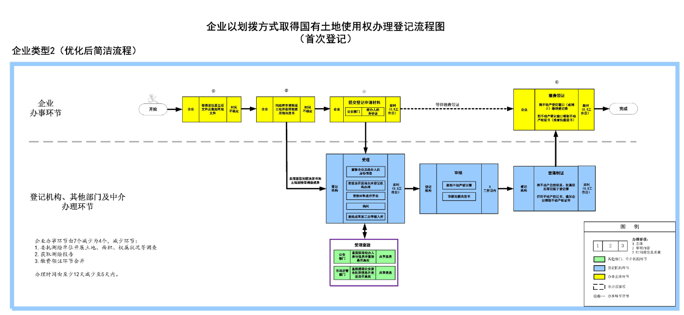 企業以規劃方式取得國有土地使用權辦理登記流程圖(首次登記)