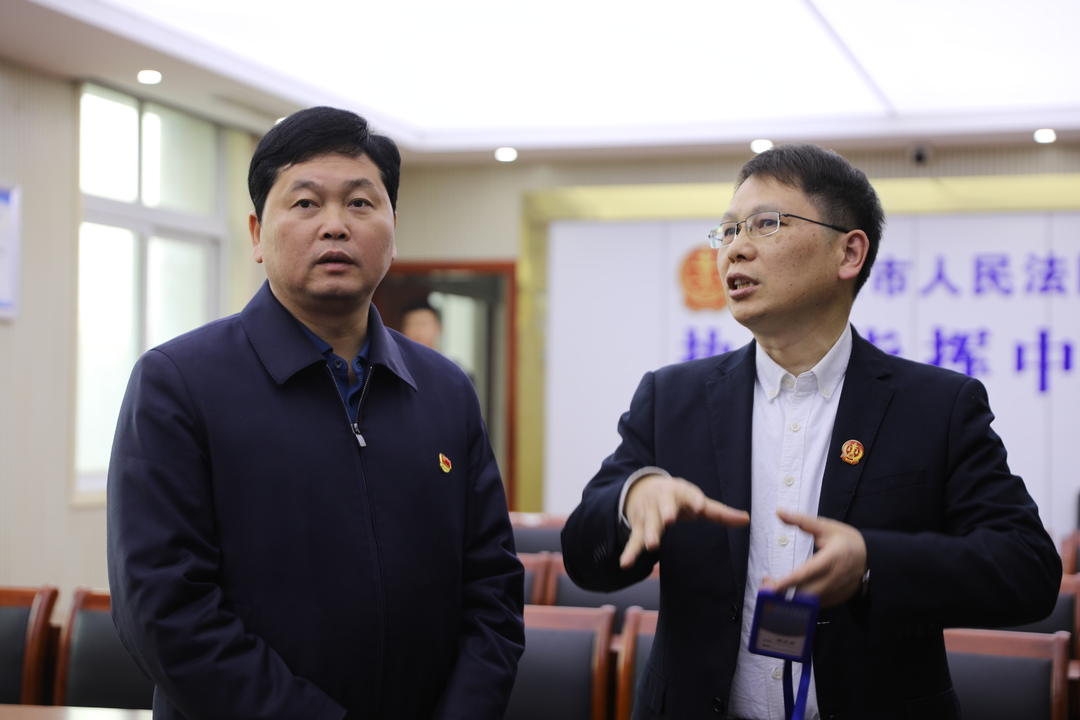 在市人民法院,楊智勇一行先后參觀了該院訴訟服務(wù)中心、執(zhí)行指揮中心、文化走廊、職工影院、道德講堂、職工之家等地,通過實(shí)地查看、聽取匯報(bào),詳細(xì)了解了立案程序、案件辦理、隊(duì)伍建設(shè)等情況。