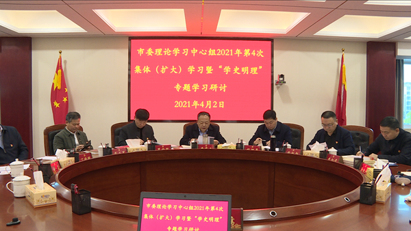 4月2日,沅江市委理論學習中心組召開2021年第四次集體(擴大)學習暨“學史明理”專題學習研討會。市委書記黃育文,市委副書記、市長楊智勇,市委副書記羅必勝,市人大常委會主任雷越毅,市政協主席肖正軍及全體在家市領導參加學習。